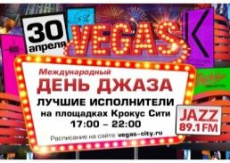 В четверг совместными усилиями «Крокус Сити» и Radio Jazz будет проведен День Джаза . С пяти часов вечера на базе площадок «Крокус Сити», а также в ресторанах сети Restaurants by Crocus Group, для всех желающих будет проводиться музыкальный марафон, в рамках которого будут представлены разнообразные группы и отдельные исполнители.